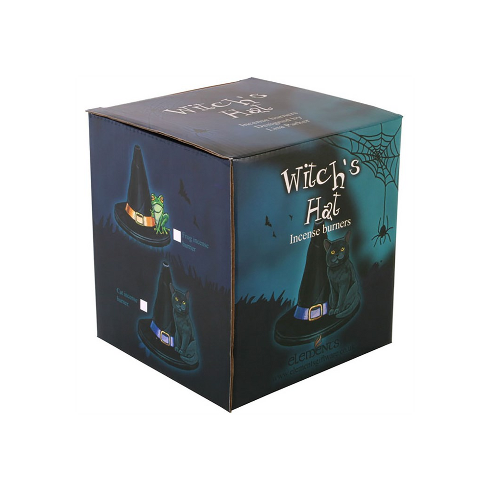 A witch hat with a cat design incense cone burner. When the cone is burning, the smoke rises from the top of the hat. Designed by Lisa Parker. Product Dimensions: H11.5cm x W10.5cm x D10.5cm Packaged Dimensions: H14cm x W13cm x D13cm